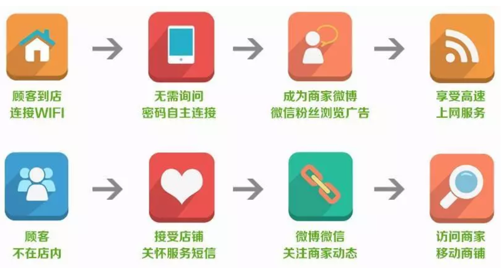 ③顧客在使用免費(fèi)WIFI過程中,可以直接到達(dá)商家設(shè)置的任何頁面(比如微網(wǎng)站、領(lǐng)取會(huì)員卡、領(lǐng)優(yōu)惠券、在線預(yù)約美容師等),是給顧客提供便捷服務(wù)和提升消費(fèi)體驗(yàn)的得力助手。